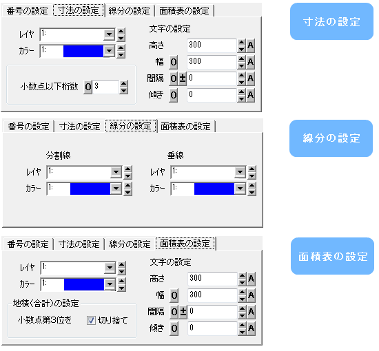 三角形の底辺(基準線を作図またはすでに描かれている線分を指示)、三角形の他の二辺の長さ、三角形の頂点を順に指示すると番号や寸法が自動で作図されます。 ■ 作図例