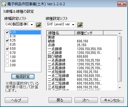 [推奨設定]ボタンで、現在選択されている値を最小値としてCAD製図基準(案)で推奨されている
