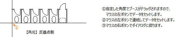 ■ データのセット データのセットは「基点からの位置と角度」の「図面から」と「上側」「下側」で操作が異なります。