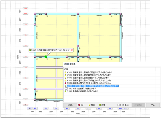 計算を実行する前に、入力したデータの整合性チェックを行い、エラーや警告の有無を診断します。